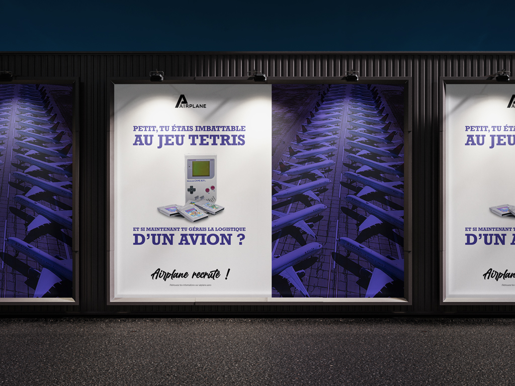 La société AIRPLANE éprouve des difficultés à embaucher, les candidats préfèrent s’orienter vers un des géants du secteur. Airplane souhaite donc créer une campagne de recrutement originale et impactante à destination des jeunes et donner ainsi une image fraîche et moderne de la société.