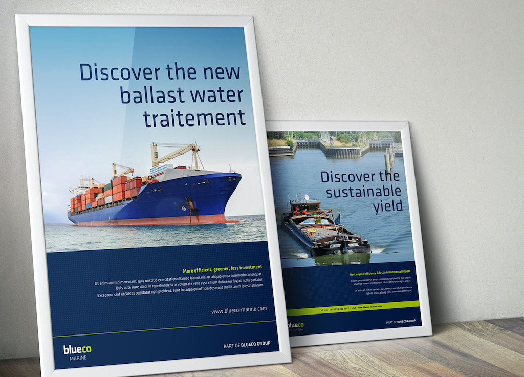 Après de nombreuses recherches en validité à l’échelle mondiale tant sur la signification que sur l’interprétation, nous avons pu proposer au groupe EDCO LTD GENEVA le nom de BLUECO ( BLUE pour la couleur des océans et ECO pour l’engagement du groupe dans cette démarche). Une fois le nom trouvé et validé nous avons développé l’ensemble des supports nécessaires, site internet, affiches, encart presse, goodies, carte de visite, plaquettes, catalogues, habillage camion, autocollants etc.... Parallèlement nous avons déposé la marque dans plus de 50 pays.